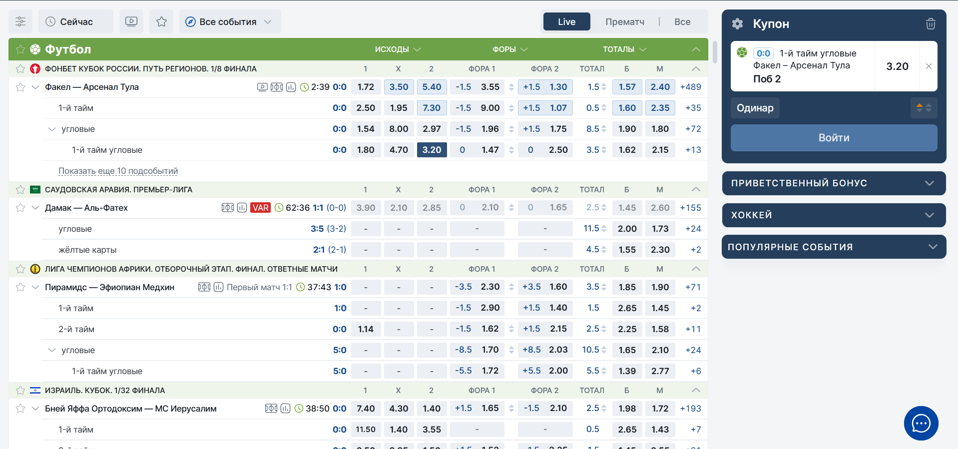 БК Фонбет лайв - понятный старт для ставок в реальном времени